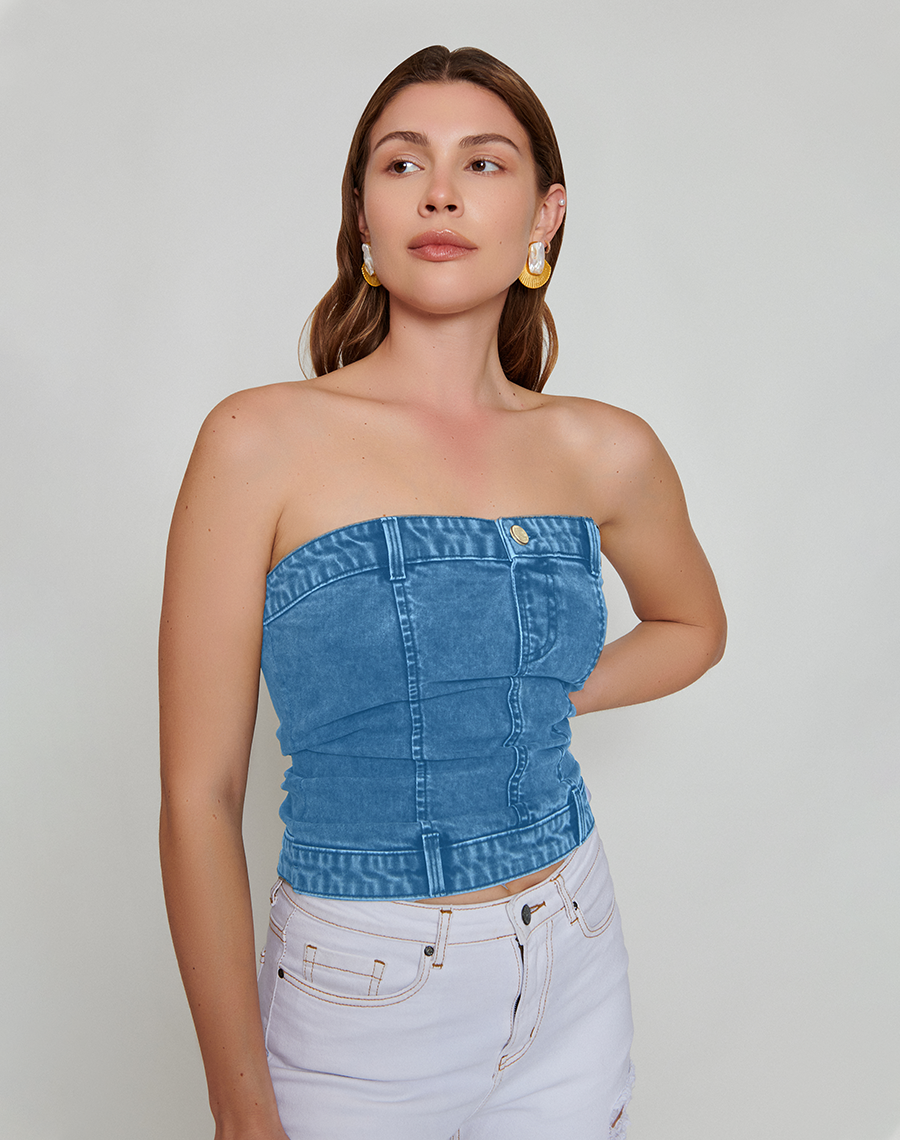 Give out Chic vibes in our Charcoal Black denim tube top with a bottom jeans look.