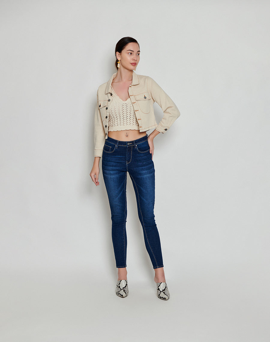 This cropped denim jacket is multi-purpose and can be worn with jeans and shorts alike.
