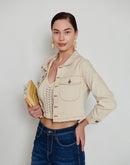 • This cropped denim jacket is multi-purpose and can be worn with jeans and shorts alike.
