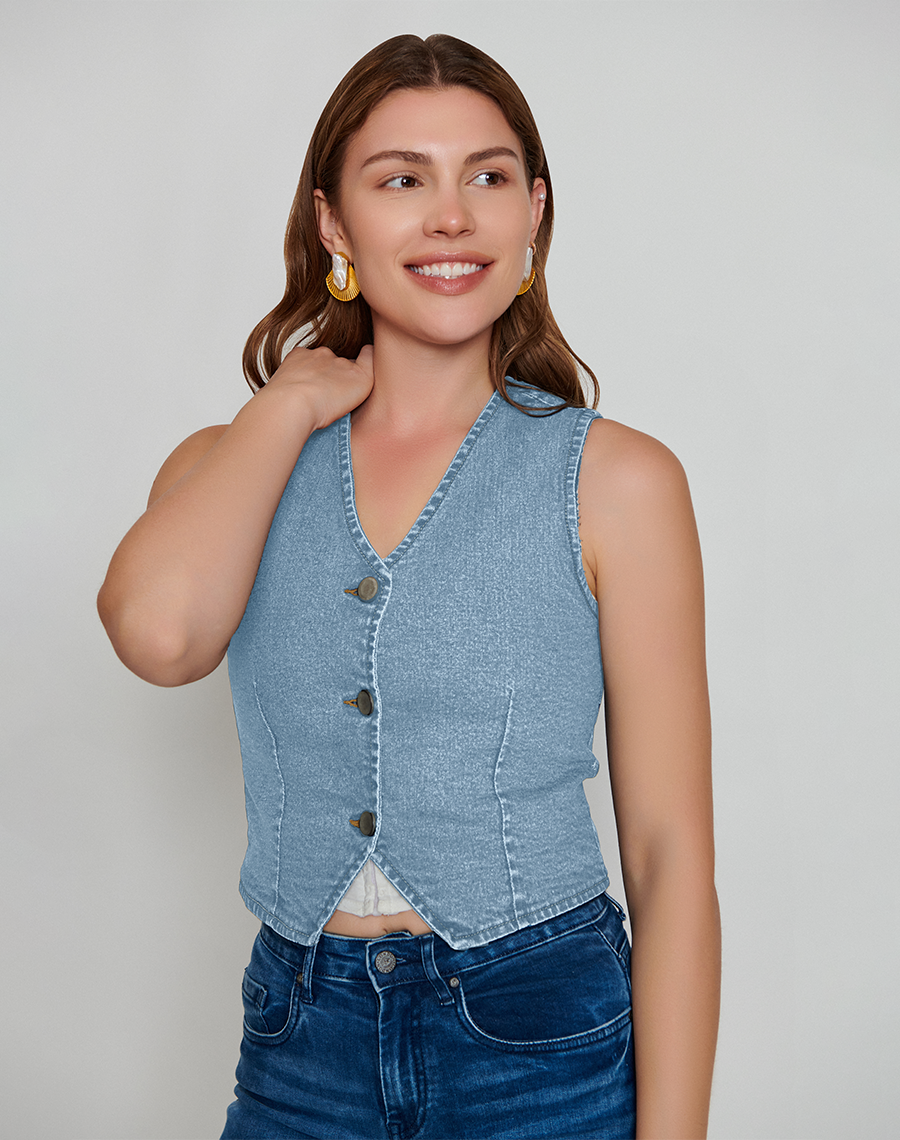 Create versatile looks with our super functional denim waistcoat.