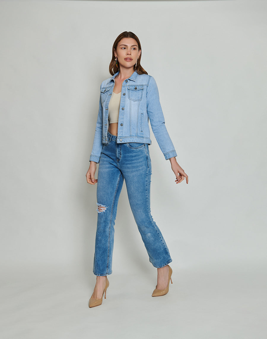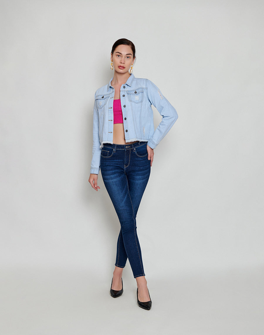 This cropped denim jacket is multi-purpose and can be worn with jeans and shorts alike.