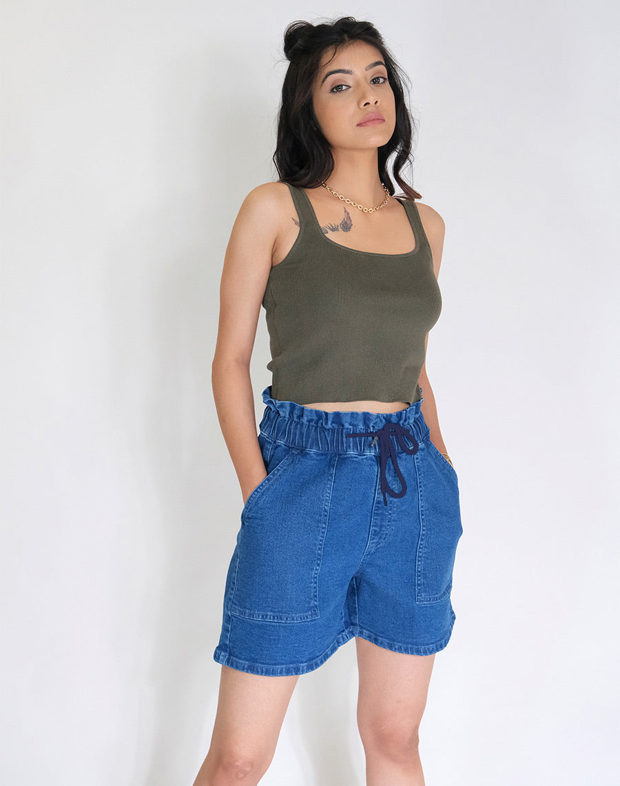 Denim Shorts with drawstrings to give you that ultimate comfort. Hit the gym, go for a run or brunch in these super relaxing denim shorts that go with multiple occasions.