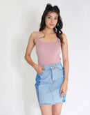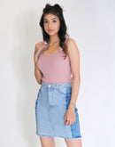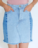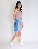 - A double-shaded denim skirt that ups your denim game like no other denim outfit. Let’s go back to the 90s and own the femininity in denims.