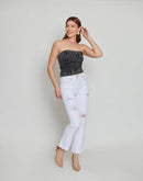 - Give out Chic vibes in our Charcoal Black denim tube top with a bottom jeans look.