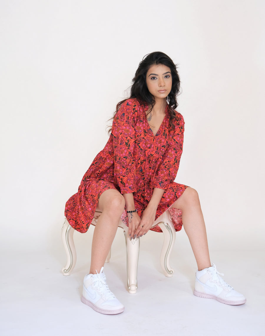 Floral, flowy dresses are always a go-to during summers with comfortable silhouette yet stylish make. This red floral dress is frilled and flowy, giving you a relaxed look and feel in the summer heat. Floral Red Fabric Composi...