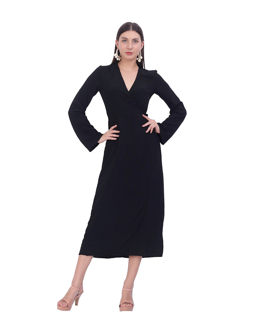 Elevate your wardrobe with our Black Overlap Midi Dress, a timeless piece that exudes elegance. Crafted from premium fabric, this dress features a classic black hue that never goes out of style. The unique overlap design adds...