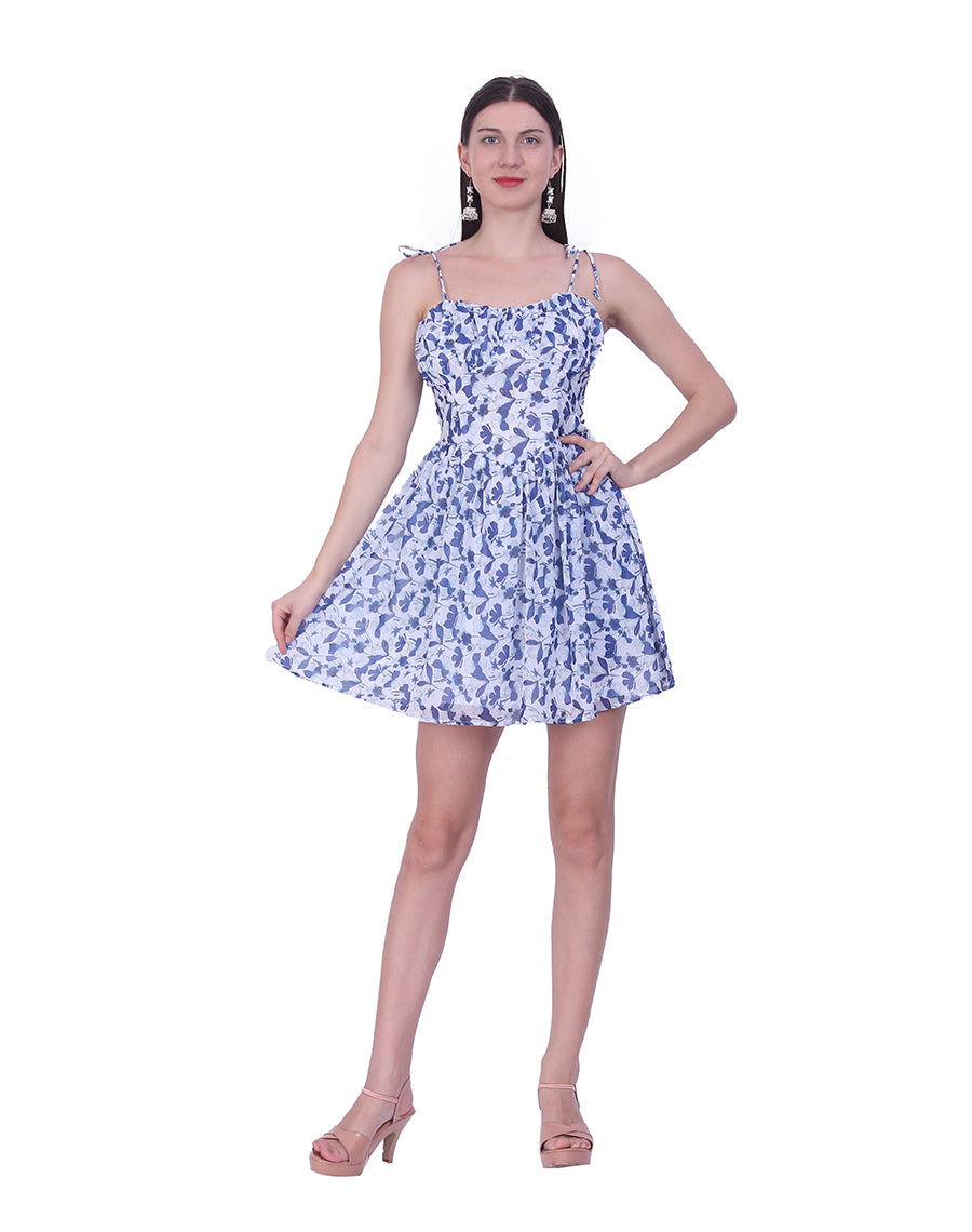 Elevate your summer wardrobe with our stunning Blue & White Flare Mini Dress. Designed to capture the essence of carefree elegance, this sleeveless dress features delicate tie-up straps on the shoulders, allowing you to a...
