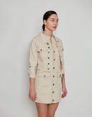 • Design Details: Front open with buttons and pockets on both the dress and jacket.