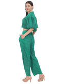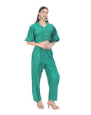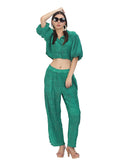 Elevate your style game with our stunning Emerald Green Crop Top and Pants Co-Ords Set. Crafted from chic wrinkled fabric, this set seamlessly combines sophistication with contemporary flair. Puffy balloon sleeves add a dramatic touch, while the crop top length pairs effortlessly with the pants making it look flattering.